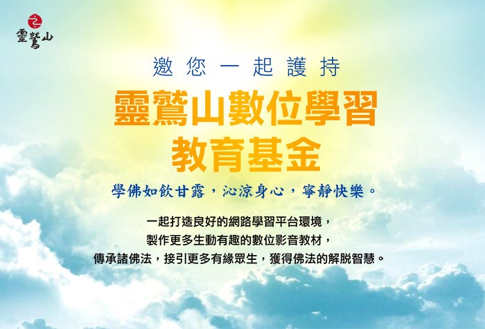 首頁 四期教育 四期教育 一坐遍滿十方界 2020/12/22 佛的不思議法,要靠平常如臨深淵、如履薄冰、戰戰兢兢,心心念念去做。每天做兩件事:打開空門,點亮心光。不斷去修證,不斷從聞思修、戒定慧裡去受持 圓滿覺-華嚴期 佛對舍利弗的授記 2020/12/08 在《法華經》裡,舍利弗是第一個得到佛陀授記的聲聞眾,這代表什麼意義?第一,舍利弗是真實瞭解佛說諸法實相的道理。第二,跨越並非只有菩薩可以成佛,聲聞也能成佛這個門檻。 覺有情-法華期 認真觀照 發現空性的存在 2020/11/24 禪修最主要的就是成就這個心,這條心的道路也就是修行,修行首要的就是息滅我們的妄念執著。 正法眼-般若期 佛陀的勉勵 2020/11/10 在佛陀涅槃前約三個月,佛陀仍不忘勉勵弟子們要為教法久住世間,努力修持道品。如果能好好學習佛陀所說諸法,並且去實踐、用功,那麼正法就可能長時間在世間流傳 初轉法-阿含期 佛的境界 2020/10/27 諸佛境界是如何?就好比初初學佛,看一切無常、生滅、苦、空、無我,不斷看緣起生滅。 圓滿覺-華嚴期 感受《華嚴經》的真善美,從詩句文藝風走向聞思修 2020/10/21 芸芸眾生如何能與諸位菩薩心有靈犀一點通呢?就是要我們的心意清淨,絲毫不沾塵垢,覺照的月光自然會映現於心,顯露光明。 圓滿覺-華嚴期 觀月,如同觀呼吸 2020/10/21 心道法師說:「我們的月亮在哪裡?每個人都是圓滿的,但是就是被卡住了,卡在見跟思上,見到的東西就遮到了,思到的東西就遮到了,月亮變成矇矓的月。 正法眼-般若期 與伴侶一起練習正念 2020/10/21 你可能會想:「正念的練習,不是只對我自己有幫助嗎?這怎麼會影響到我的感情關係呢?」答案是:非常有關係。 初轉法-阿含期 類別選擇 › 四期總論 › 初轉法-阿含期 › 正法眼-般若期 › 覺有情-法華期 › 圓滿覺-華嚴期 推薦發表 永無止盡的渴愛READ MORE「靈鷲山數位學習教育基金」 邀您一起來護持!READ MORE煩惱只是過路的影子READ MORE 延伸閱讀 投生的地圖READ MORE感受自己內在的那份明朗READ MORE諸法實相READ MORE2020下半年 – 用佛法面對新冠疫情挑戰READ MORE認真觀照 發現空性的存在READ MORE 12345678910下一頁最後一頁