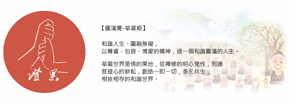 首頁 四期教育 圓滿覺-華嚴期 圓滿覺-華嚴期 一坐遍滿十方界 2020/12/22 佛的不思議法,要靠平常如臨深淵、如履薄冰、戰戰兢兢,心心念念去做。每天做兩件事:打開空門,點亮心光。不斷去修證,不斷從聞思修、戒定慧裡去受持 華嚴期經論 佛的境界 2020/10/27 諸佛境界是如何?就好比初初學佛,看一切無常、生滅、苦、空、無我,不斷看緣起生滅。 華嚴期經論 感受《華嚴經》的真善美,從詩句文藝風走向聞思修 2020/10/21 芸芸眾生如何能與諸位菩薩心有靈犀一點通呢?就是要我們的心意清淨,絲毫不沾塵垢,覺照的月光自然會映現於心,顯露光明。 華嚴期實踐 從《華嚴經》看美國房地產大亨 2020/09/11 《華嚴經》如實廣告:成佛時,佛陀心念眾生皆能出生到如來之家,如來家就是「法界」,好比無限通達寬廣的網際網絡一般。如何辦到呢? 華嚴期實踐 如何認識如來? 2020/08/31 《金剛經》以般若來看「如來」,無所從來,亦無所去,所以稱為如來。如果說如來有色有相,那你不得見如來。 華嚴期經論 從佛經《華嚴經》學習金錢的理財觀 2020/08/07 若能利益他者,如同空氣的迴流,或是日光的反射,也將會回到自己身上,這種回饋利他的心,全然奉獻給廣大無盡的法界,直到覺悟成佛,同如川流大海,廣闊不止。 華嚴期實踐 成佛在心念中 2020/07/17 成佛是在生活之中,而且是在每一個心念之中,包括:吃飯、睡覺、上廁所。生活中因為念念不忘眾生,而發種種誓願生出不可思議的力量 華嚴期經論 佛,其實你就是 2020/06/08 相應於佛的自在跟果德,這種解脫、出離煩惱的力量,在想成佛的時候,《華嚴經》告訴我們:「其實你就是。」只要你的心沒有雜染。 華嚴期經論 類別選擇 › 華嚴期總說 › 華嚴期經論 › 華嚴期實踐 推薦發表 永無止盡的渴愛READ MORE「靈鷲山數位學習教育基金」 邀您一起來護持!READ MORE煩惱只是過路的影子READ MORE 延伸閱讀 從《華嚴經》看美國房地產大亨READ MORE從佛經《華嚴經》學習金錢的理財觀READ MORE成佛在心念中READ MORE如何認識如來?READ MORE感受《華嚴經》的真善美,從詩句文藝風走向聞思修READ MORE 123456下一頁最後一頁