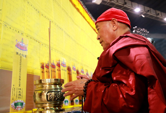 ※ 圖為心道法師於25週年水陸法會的幽冥戒佛事