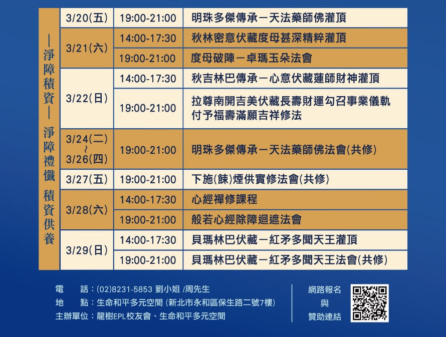 3/20-3/29 第三屆 藏傳佛教課程--淨障禮懺 積資供養 滿願健康