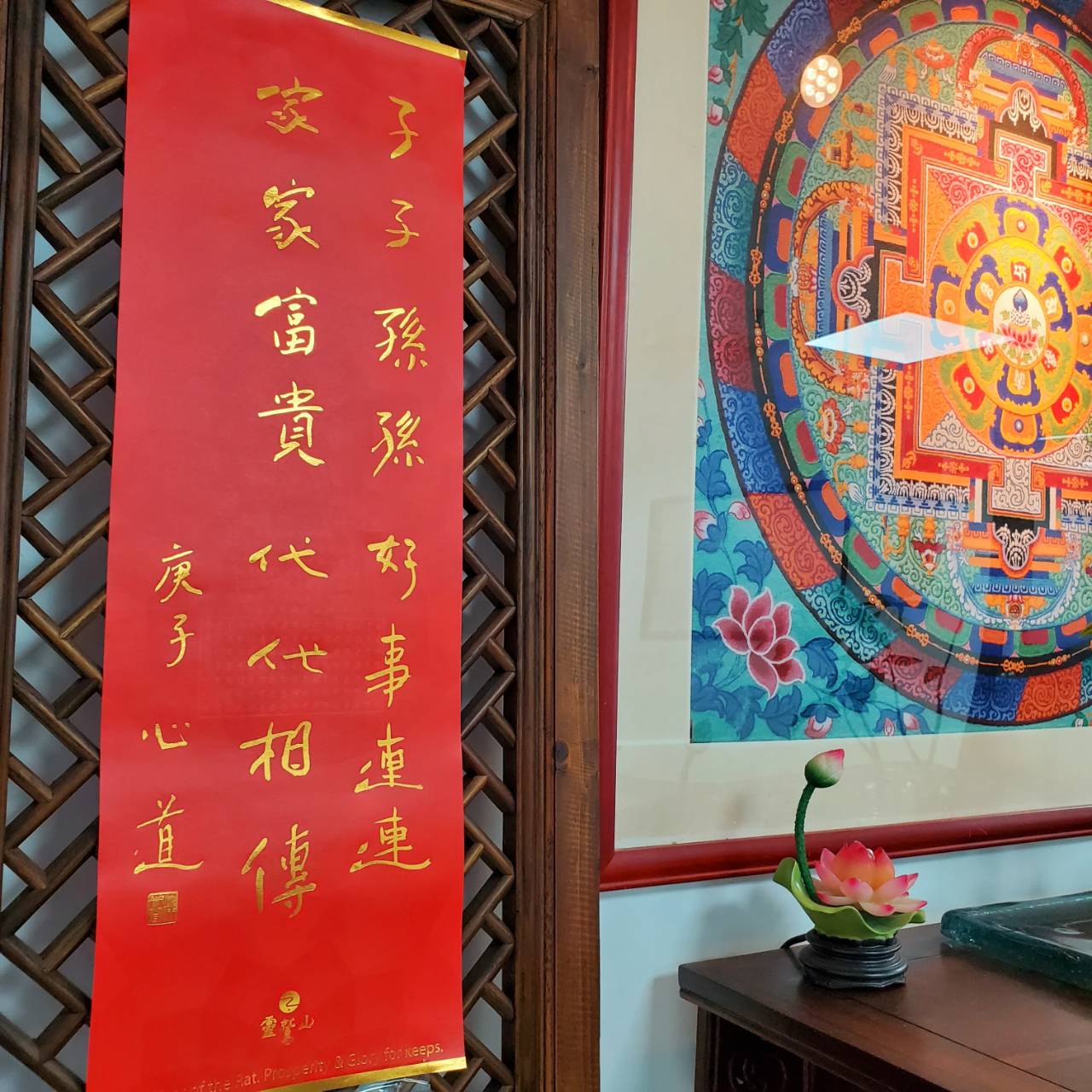 2020庚子鼠年,靈鷲山開山宗長心道法師親題春聯墨寶:「子子孫孫,好事連連;家家富貴,代代相傳」。