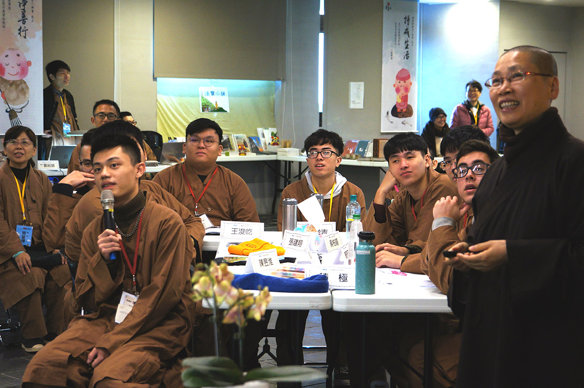 大康法師、法耀法師、妙寶法師與學員們座談,分享出家和學佛故事;