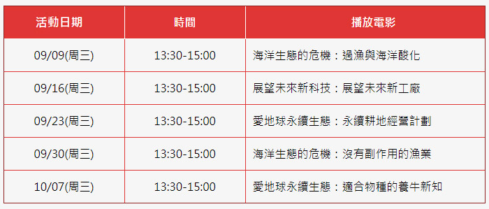 9月9日起每週三的宗博館「我愛芳鄰」里民日與『生命和平‧地球永續』--環保電影活動串連,活動於下午13:30開始入場,14點開始,大約一個半小時,每場電影映後並舉行有獎問答贈送小禮物活動。邀請您呼朋引伴支持愛地球環保綠行動。本活動免費,前來本館參與活動時,請記得戴口罩。場地座位有限,敬請提早入席。