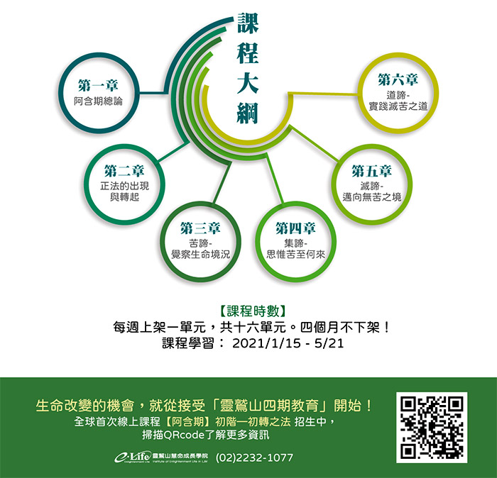 靈鷲山四期教育【阿含期】初階--初轉之法 線上課程 即日起開始報名