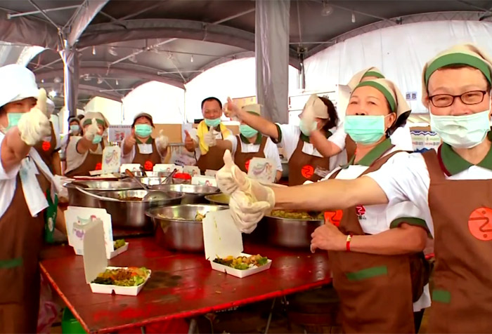 法會道場的莊嚴,仰賴每個人盡心盡力的付出。大寮裡從早到晚,為大家準備食物的老菩薩們,有時候不小心被熱油燙傷,卻毫無怨言照常服務。那些裡裡外外、忙進忙出的志工菩薩們,從場地佈置、清潔到最終回復原狀,每個細節都能看見他們的用心。若是一時疲累,在會場裡迷了路,也總是能遇見帶著微笑的菩薩們,為大家指引方向。心道禪師說:「莊嚴不是裝飾,而是用心做好服務與奉獻。」正是在禪師的引導之下,眾人能如此相互圓滿成就,維持宇宙的正向能量。
