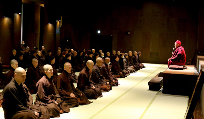 華嚴法會圓滿後,靈鷲山全體僧眾12月19日至28日進入禪十關期,25、26日特別邀請措尼仁波切前來為僧眾進行大圓滿課程。在禪境中找回自己安詳寧靜的本心,讓一年繁忙的身心,在此歲末時刻收攝、沉澱,回歸寧靜大養息。