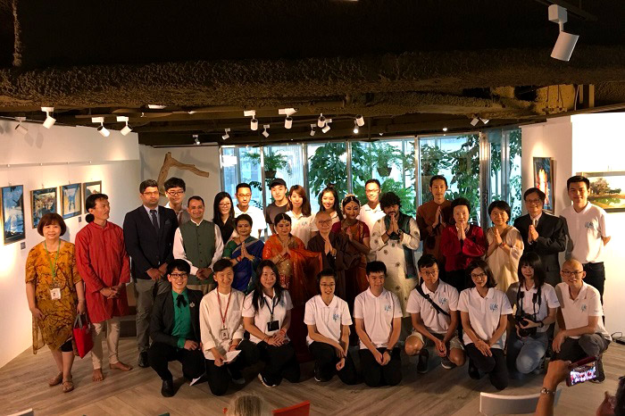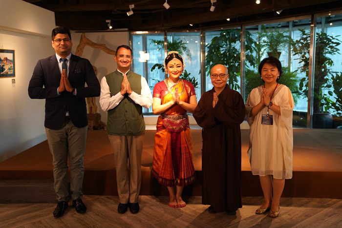 「生命和平多元空間」與「慈悲之路:佛教聖地和藝術遺產—本諾伊.貝爾攝影展 」開幕儀式圓滿後,執行長了意法師與印度台北協會賈旭明副會長、助理會長軒轅揚勳、印度舞者Erina Kasai、若持敏弘、西瓦印度舞團等貴賓上台一起合影,留下了珍貴歷史性的畫面。