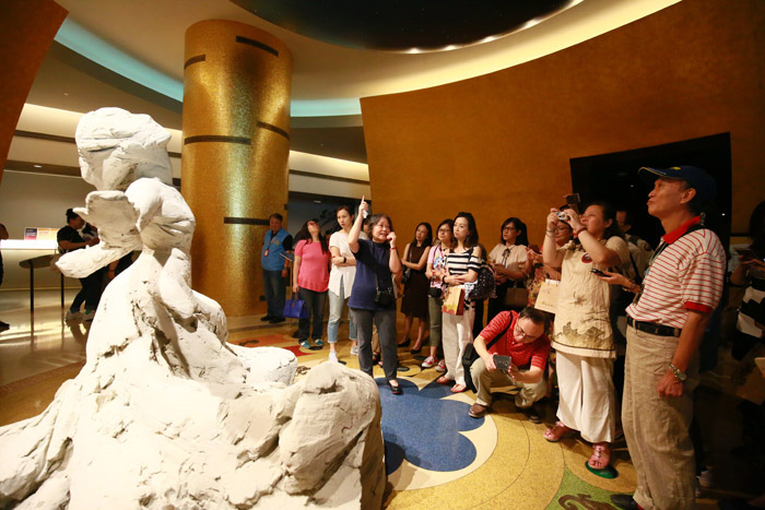 多件真人比例大小的蠟像,皮透血色,毛髮纖縷,栩栩如生,讓參觀者無不讚歎。最大的一件作品為「旋的冥想-跨越一生一世舞者羅曼菲雕像」,長210、寬296公分,將舞者羅曼菲裙襬細微的皺褶都呈現,旋轉舞姿也象徵由凡入聖的轉化。