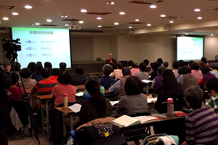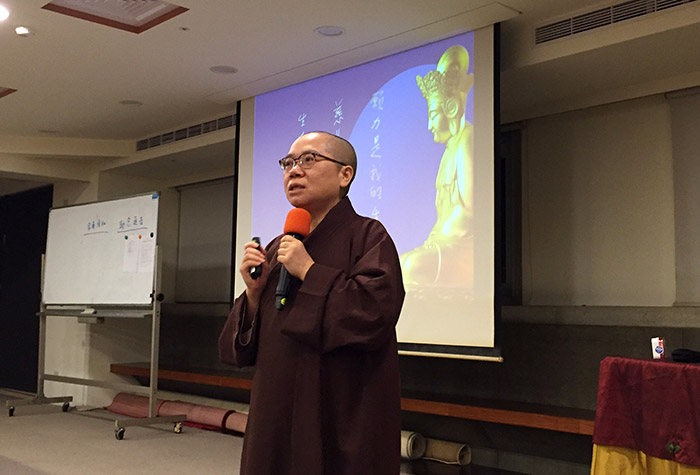 11/29晚上,在靈鷲山新北分院講堂,進行《四期教育專題課程》生命關懷實踐課程圓滿結行,了意法師在課程中,跟大家一起分享與勉勵:
