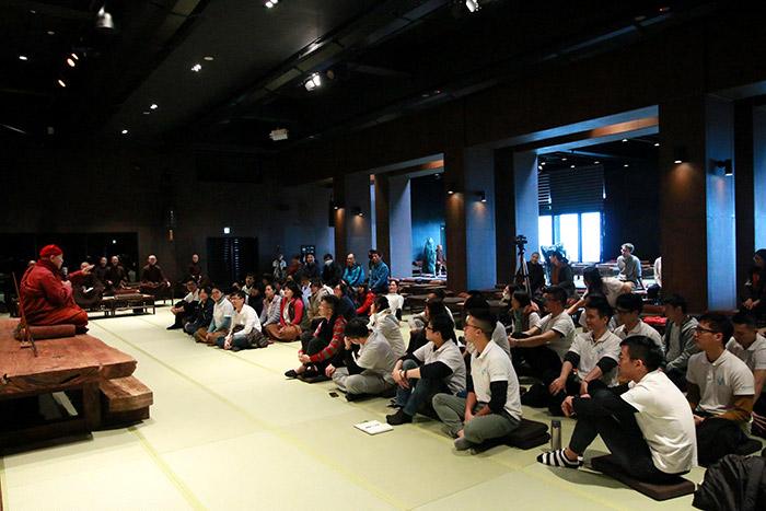 心道法師對所有龍樹 EPL 國際青年師生們開示:「這一代的年輕人要能夠覺醒如何對世界負責,也就是要讓心能夠專注、擁有空間,才能產生震動世界的量子效應來拯救地球。」