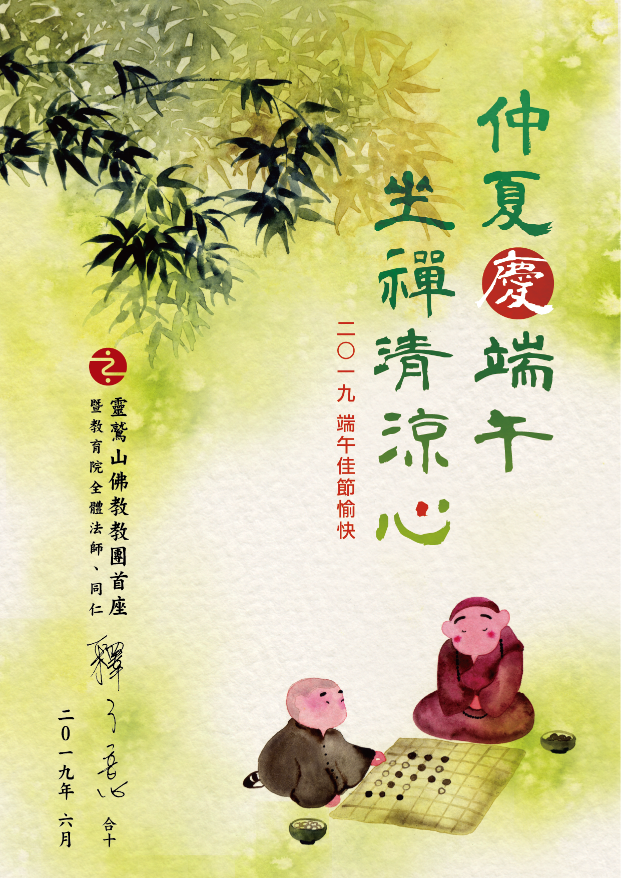 首頁 教育新訊 最新消息 訊息內容 靈鷲山教育院全體法師同仁敬祝 端午佳節吉祥 圖 / 編譯室文 / 編譯室 2019/06/05 心道法語: 學佛就是學習佛陀的智慧,讓心不像粽子一樣, 被現象的繩子綑綁。 要離開生死輪迴、不隨境轉, 讓心鬆綁,得到自在。 靈鷲山教育院首座 了意法師暨全體法師及同仁 敬祝大家 端午佳節吉祥! 馬來西亞柔佛「覺醒之道 心靈探索營」:生命關懷實踐課程 上一篇 靈鷲山三乘佛學院「南傳法教課程」敬邀緬甸國立佛教巴利大學校長來山授課 下一篇 推薦發表 永無止盡的渴愛READ MORE「靈鷲山數位學習教育基金」 邀您一起來護持!READ MORE煩惱只是過路的影子READ MORE 延伸閱讀 第21屆「山海行者」 靈鷲山青年佛門探索營 報名開始嘍!READ MORE109年宗教團體表揚大會 世界宗教博物館發展基金會獲頒宗教公益獎READ MORE2020《經典開門》系列講座:智慧人生~照見心經 11/21開講,歡迎報名!READ MORE靈鷲山四期教育【阿含期】初階--初轉之法 線上課程 即日起開始報名READ MORE2020「平安禪法課程」 歡迎報名READ MORE