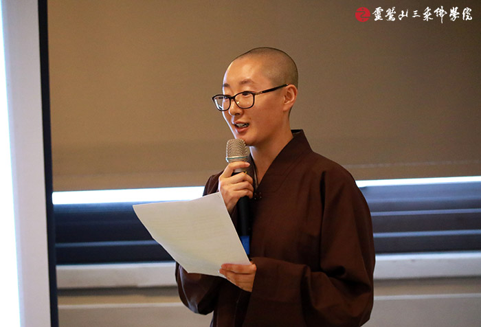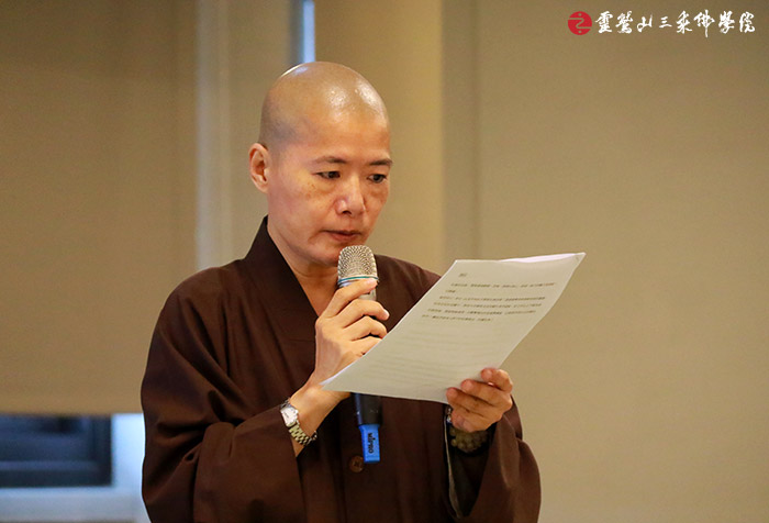 在課程最後一天的圓滿日,全體僧眾分組向 心道師父及校長和主任,報告這一個月來的學習心得,也讓校長和主任稱讚學生們都是具備了十成的學習精神。