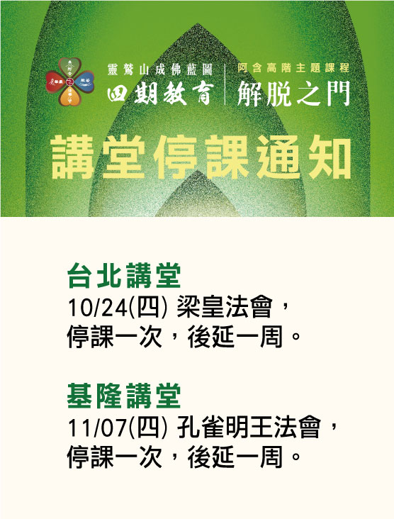 「阿含高階主題課程-解脫之門」 10月17日起正式開課